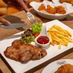 🍽 Satisfy your hunger with their single-dish meals available all day, such as Soft Egg & Shrimp Rice, Soft Egg & Ham Rice, Kurobuta Pork Steak with French Fries, Hawaiian Pizza, and Spicy Chicken Wings. This place truly has it all!