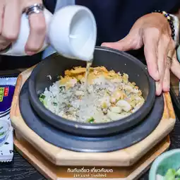 Korean Rice Sotbap (Sotbap), an authentic homemade Korean dish from Korea. Solsot (Sotbap) is now available at its first branch in Thailand at CentralWorld! Enjoy the authentic taste of "The First Original Sotbap in Thailand." This Korean rice sotbap restaurant offers more than just deliciousness. Choose your preferred meat: pork, beef, madai fish, scallops, or chicken. Single pots of Korean rice sotbap start at 220 baht.