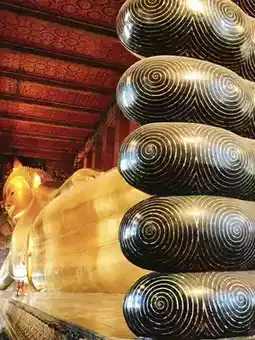 The soles of the Buddha's feet are inlaid with 108 Buddhist motifs, breathtaking in their grandeur and intricacy. ✨