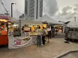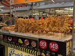 If you're looking for a fun, delicious, and relaxing nightlife spot in Bangkok, JODD FAIRS Ratchada is the place for you! 🎉 This vibrant market offers a wide variety of street food, from signature dishes like grilled pork, jim jum (grilled pork), boat noodles, and spicy salads, to chic desserts and juices. 🍜🥤 Plus, there are chic fusion restaurants that add a touch of charm.