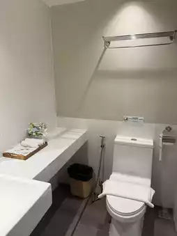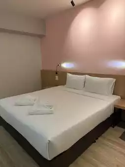 If you're looking for a centrally located accommodation near Jodd Fair Market, we highly recommend The Neuf Hotel. Situated in Soi Ratchada 3, it's less than a 10-minute walk from MRT Rama 9. This area is bustling with food options, safe, and convenient for travel. Personally, I stayed here for a work trip and found the room excellent—comfortable sleep, soft bed, and the water pressure in the shower was fantastic. Parking is also very convenient. 🚘 There's parking available, and it's super easy to access.