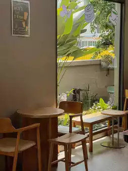 ✨ A cozy cafe in the Sutthisan area with a relaxing atmosphere. The cafe is decorated in soothing earth tones, surrounded by lush greenery and the refreshing sound of a small waterfall. It's a perfect spot to work, sip coffee, enjoy desserts, or simply unwind. 🌳🏡
