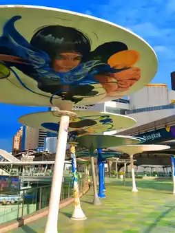 MBK Shopping Mall is a historic mall in the Pathumwan area. Its frontage is a wide open space, offering access to numerous attractions, including the Bangkok Art and Culture Centre (BACC), Siam Square, Siam Center, Siam Paragon, and Wat Pathum Wararam Ratchaworawihan. Surrounded by 5-star hotels, it's easily accessible via the BTS Skytrain, with both Siam and National Stadium stations nearby. Thais and foreigners alike often come here to stroll and take photos. The evening lights are beautifully lit. #BangkokTravel #DepartmentStore