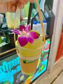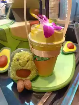 Afterwards, I went to Big C next door, but I couldn't stop craving that flavor. So I went back and bought a Avocado Honey Milk #2 to enjoy slowly at the hotel. The pretty lady boss recognized me, considering I'd just bought one. I told her it was amazing, and she was delighted. Seeing I wanted to take a photo, she even offered me her baby avocado doll.