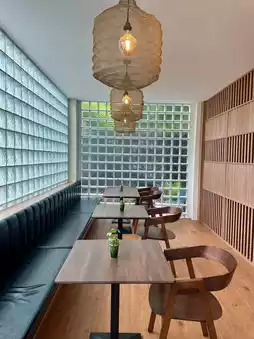 A new matcha shop in Sriracha has opened in Hua Mak. It's incredibly well-designed! The shop's decor is beautifully done in a brown and wood tone, giving it a Japanese feel. The open-air space features ceramic bowls for you to shop. The atmosphere is warm and welcoming, with plenty of seating options. They also offer a wide selection of drinks and desserts. They also offer a wide selection of matcha.