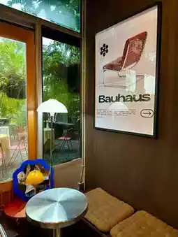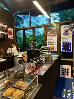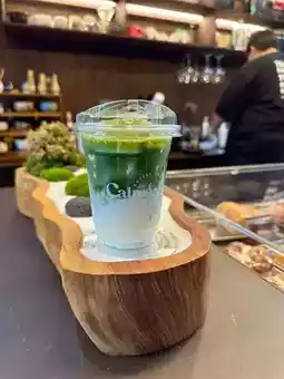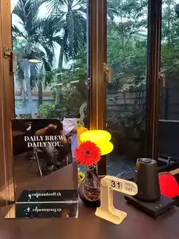 A newly opened cafe in the Rama 9 area, this cafe offers a shady atmosphere with a soothing theme. Both indoor and outdoor areas are available. Inside, there's a coffee bar and a record player corner, perfect for taking cool photos. Although the seating isn't very large, the must-try menu item here is the matcha, a rich and slightly sweet drink. They also offer a selection of baked goods to complement your meal.