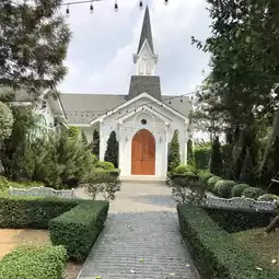 Today, I'm taking you to Misstar Cafe by Davika. This cafe is so good! It's so chill, it feels like you've stepped into a fairytale! 🏰 The shop is so beautiful, with a photo spot that features a small church (as seen in the picture!). Upon entering, you'll find a beautiful stone-paved walkway surrounded by lush greenery. 🌿 The cafe area is beautifully lit, making every angle a great photo opportunity! 📸