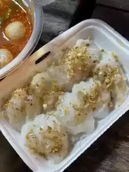 #Get a discount without relying on luck. The best Pak Mor noodles at Sai Tai Mai Market has to be this shop, "Nimah Pak Mor Noodles." It was my first experience eating Pak Mor noodles. I must say that it was more delicious than I expected. They make Pak Mor fresh right there. There are many soups to choose from. We chose Tom Yum. The taste was spicy and full of flavor. Eating it with Pak Mor was even more perfect. Anyone who comes to Sai Tai Mai Market, I recommend that you come and try it. #Review delicious restaurants #Delicious restaurants in Bangkok