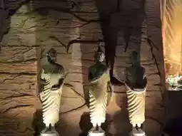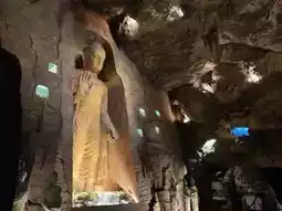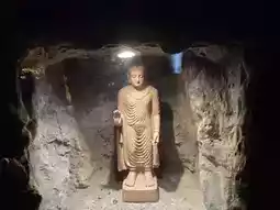 The Bamiyan Cave is located at Wat Saket, also known as the Golden Mount. It is a replica cave featuring a large Bamiyan Buddha statue modeled after the one in Afghanistan. Inside, there is an exhibition of ancient scriptures, considered some of the oldest in the world, which were gifted to the temple by the Norwegian government.