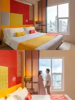 The Deluxe Mode Room offers 30-40 sq.m. of space, perfect for two people, and comes with full amenities. In the evening, treat your significant other to dinner with stunning city views at The Roof 38th Bar. The food and drinks are all delicious.