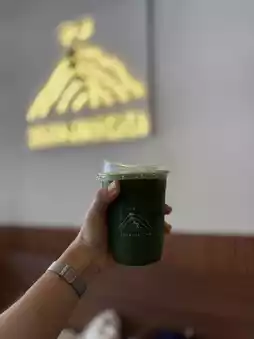 Whipped matcha cream poured over coconut milk, easy to drink and fragrant.