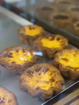 Original Caramel Egg Tart — This basic flavor uses a crispy, multi-layered croissant-style dough with a gooey, fragrant caramel filling. Personally, I think it's delicious, just the right amount. There are many other flavors to try, and another bestseller we tried was the Kyoho Grape Cream Cheese. It was incredibly delicious and fragrant, with a perfectly soft dough. The shop often introduces new flavors for you to try.