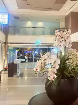 Soaring ceilings, sleek marble floors, and floor-to-ceiling windows flood the space with natural light, while local art and lush greenery add a touch of cultured serenity. Whether you're checking in or meeting friends, this sophisticated yet welcoming atmosphere sets the tone for a memorable stay.