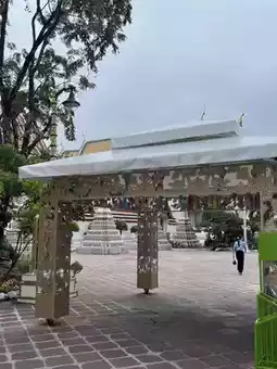 Chinese-style Pavilions: Beautifully decorated with ceramic flower motifs and stone guardians, showcasing Thailand's historical trade connections.