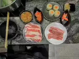 • Sliced pork and beef shabu with a rich broth. Add fresh vegetables for a truly satisfying finish. 🥬