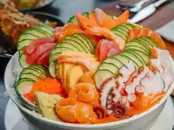 Fresh sashimi and sushi, a salad bar, cold cuts, and a wide variety of cheeses to choose from.