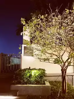 With manicured lawns, soft-lit pathways, and city views, it’s a peaceful urban retreat.