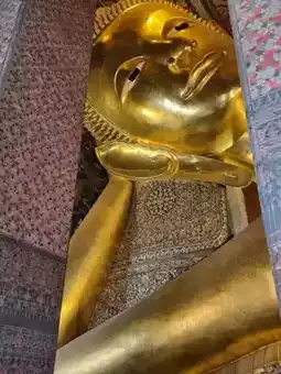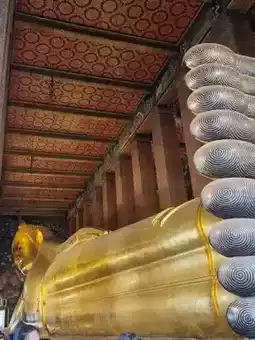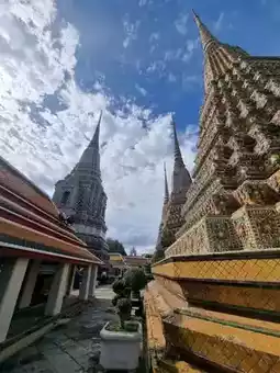 Atmosphere: Wat Pho is an ancient temple with a long history and is renowned both in Thailand and abroad. It's located near Wat Phra Kaew and the Grand Palace, making it an easy walk away. The temple grounds are spacious and surrounded by a variety of Buddhist structures, including the Ubosot (ordination hall), the Vihara (wihan), the main chedi, and smaller chedis, all lined up around the temple grounds. They're decorated with colorful and delicate glazed tiles, creating a truly beautiful and delicate atmosphere. Walking around the temple grounds, you'll see Buddha images in almost every corner. The atmosphere is also shady with large trees and small gardens throughout.