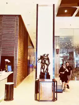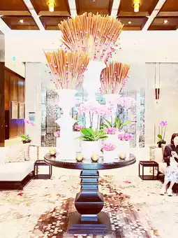 Soaring ceilings, polished marble floors, and stunning floral arrangements create an immediate sense of arrival. Traditional Thai art elements are thoughtfully woven into the modern design—from silk-inspired wall panels to locally crafted sculptures.