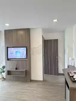 This is a 100/10 place to stay near Ratchada. I'll definitely be back. This hotel is near Huai Khwang Market, perfect for a late-night meal. Parking is convenient, and the staff are attentive and helpful. The room is beautiful and clean, divided into four sections, which is great. I love it! The bathroom has two doors, two air conditioners, which is great! There are two TVs, and the bed is very comfortable. There are mini-bar snacks and a dressing area.