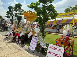 "Tan Kuai Salak" has its roots in the Salak Phat merit-making ceremony, a tradition in which Buddhists offer food and other offerings to monks through a lottery.