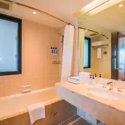 Chatrium Sathon Bangkok is a luxurious and peaceful accommodation with a large, magnificent swimming pool and various relaxation zones. We stayed in a Deluxe One Bedroom room, fully furnished with a living room, kitchen, balcony, and bathtub. The rooms are well-appointed and offer all the amenities you need.