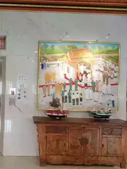 4 wa (12.5 feet) wide by 6 wa (12.5 feet) long, nestled in a pond measuring 7 wa (12.5 feet) long by 5 wa (12.5 feet) wide. The entire structure is carved from wood, with a magnificent gable roof. Documents from the request for royal permission for the restoration during the reign of King Rama V have been found, preserving the original design.