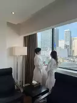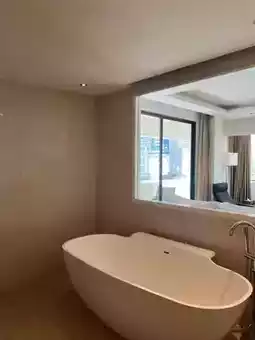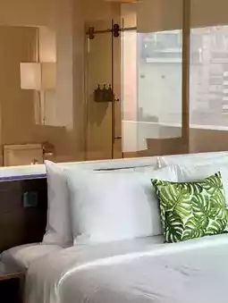 🏠 Our room: Premier Double Corner, spacious and airy, with a balcony offering views of Bangkok. 🏙️ The large bathroom features a bathtub and a glass-enclosed window leading to the bedroom. 💫 It's fully equipped! Includes a smart TV 📺, refrigerator 🧊, and safe 🔒 — perfect for both relaxing and working. 💦 The outdoor pool is a must-see for those who love to chill! Soak in the water and sip a cool drink 🍹. Plus, it's just a few steps to the chic lobby, decorated like an underwater world. 🌊✨