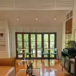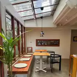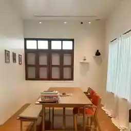 A homey-style cafe in the Lumphini Park area with a great vibe and a warm, shady atmosphere. It feels like dining at a friend's house. The lighting is beautiful and perfect for taking cool photos. The menu features comfort food, including an all-day brunch, drinks, and house-made gelato. 🍲🍕🍴