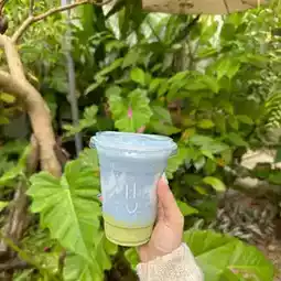 The cafe has two floors of seating, including a spacious outdoor area surrounded by trees, perfect for relaxing on a lazy day.