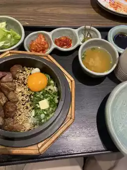 ✨ Tender beef/pork steak rice with a grilled aroma, served atop hot rice and a runny raw egg yolk. The flavors are rich and smooth.