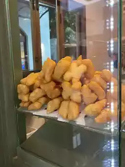 CHONGDEE is located in the courtyard behind The Circle. It's easy to find, and it's a very prominent spot. I visited on a weekday, so there was no long queue. The Slurpee menu is available in rotation. First, the fried dough sticks are displayed at the front of the shop. Although they use pre-made dough sticks, they're fried fresh to order, and they come with a free gift. They also stock freshly brewed tea in the refrigerator, available for takeout.