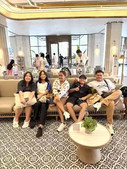 Day 1: We stayed at The Quarter Chaopraya for 3 days and 2 nights, right next to ICONSIAM. You can walk right through. There's a shortcut through the hotel that goes past the police flats. The view from the hotel overlooks the city center and the boats sailing by is beautiful, perfect for the city center.