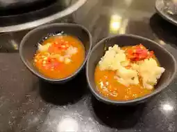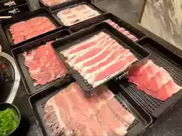 Atmosphere & Location - Namba Shabu (Namba Shabu), Sai Mai branch, is located in the PTT gas station on Sai Mai 56. It's easy to find and has plenty of parking. You can park at Foodland Sai Mai and then walk back to the restaurant. It's a shabu buffet with various prices. The interior is simply decorated and airy. When I went, there was no line, but after that, there will be a line as usual. You order by scanning a QR code on your mobile phone and then selecting your desired menu item. There are three buffet options: Standard, Gold, and Premium. Each option has a different menu. You can choose between pork and beef. You can also choose vegetables, noodles, and meatballs from the bar. There are also dipping sauces. The shabu soup comes in a variety of flavors: rich sukiyaki, pork bone broth, tonkatsu broth, Japanese black broth, and tom yum broth. You can choose two broths. I chose the rich sukiyaki and tonkatsu broth. For the dipping sauces, they have sukiyaki dipping sauce. The sukiyaki sauce is spicy, the seafood sauce is spicy, and the ponzu sauce is quite extensive. I especially ordered the highest premium buffet, which allowed me to order everything. I recommend the Wagyu beef and Karubi beef. These two are very tender and have a hint of fat. The cooking time is about 5-6 seconds, making them incredibly delicious. Besides beef, there's also seafood available. Desserts include unlimited scoops of ice cream and slushy drinks.