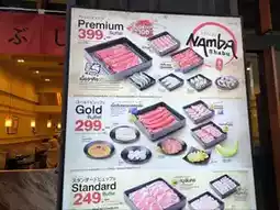 Prices: Standard buffet 249 baht, Gold buffet 299 baht, and Premium buffet 399 baht. Refillable drinks are 49 baht.
