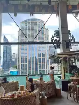 Looking for a chill-out spot in Bangkok that feels like you're at the beach? This is the place to be! Tribe Sky Beach Club is a chic beach club in the heart of the city, boasting a panoramic pool view amidst tall buildings. The atmosphere is truly amazing, like the beach itself has been elevated to a building. 🌴☀️