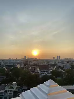 Wat Saket Ratchaworamahawihan, also known as the "Golden Mount Temple," is one of Bangkok's famous temples, renowned for its beauty and charm. Its highlight is the golden mount that stands majestically in the middle of the temple. Visitors can walk up to the top via a spiral staircase of approximately 300 steps. Along the way, you can hear the gentle sound of wind chimes, creating a serene atmosphere. Once you reach the summit, you'll be greeted with a panoramic view of Bangkok, which is especially stunning during the evening or at sunset. Every angle offers a perfect photo opportunity. If you're looking for a peaceful retreat near the city or want to enjoy a classic view of Bangkok, this is the place to visit. You'll leave with both spiritual fulfillment and beautiful photos to cherish.