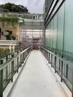 Walk the stunning glass connecting bridge at Bangkok Marriott, enveloped by lush vertical gardens and hanging vines.