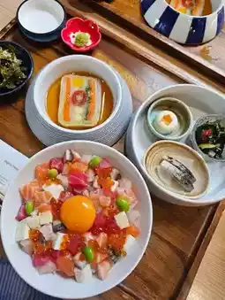 Enjoy a premium, yet affordable lunch at Omakasedon by Teppen! ✨ This restaurant caters to office workers who crave quality Japanese food in a hurry, especially with its set lunches starting at just a few hundred baht (around 250 baht and up). You'll experience the omakase experience! 🍣 The most impressive thing is that it's served in a meticulously arranged three-tiered Temari bowl! 🤩 The top layer is a refreshing appetizer, the middle layer is cute side dishes like pudding and seaweed salad, and the bottom layer is our main dish, the Don. Most customers love the Salmon Don, which boasts a bowl of fresh, juicy salmon. The set also includes a unique egg soup 🥣 that you can add a squeeze of lemon for extra freshness, and refillable green tea! The restaurant's concept is to provide everyone with access to quality ingredients at affordable prices, and its quick, 5-minute preparation makes this the perfect choice for a truly delicious and worthwhile lunch! 💯