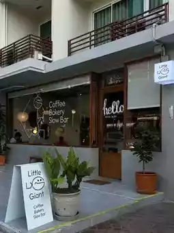 Little Giant Café is a cozy little cafe, warm and inviting from the storefront to the coffee cups. 🍯 Located in front of the Ratchawithi City Resort, just a few minutes' walk from Victory Monument BTS Station, the minimalist atmosphere features white and wood tones, with beautiful natural light from every angle. Every photo is captivating. 📸 The coffee is fragrant and smooth, medium roasted and balanced. Coffee lovers should try the Hot Latte and Iced Americano. For those with a sweet tooth, try the Thai Tea and Iced Cocoa. 🍫 The signature bakery item is the Banana Cake, baked fresh daily for its distinct banana aroma and soft, smooth texture. 🍌 The friendly staff provides excellent service, making you feel like you're at home. Open daily from 7:00 AM to 4:30 PM. Anyone passing by Victory Monument looking for a chill cafe should definitely stop by. ☕️