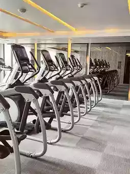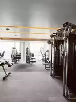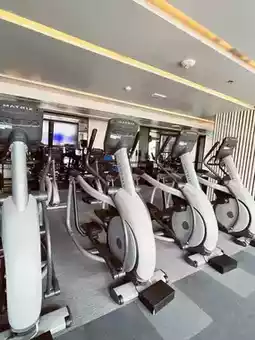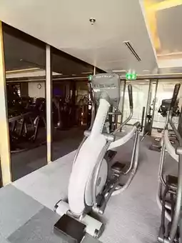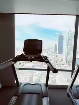 This state-of-the-art gym offers more than just equipmentโit delivers an inspiring workout experience with floor-to-ceiling windows framing panoramic city views.