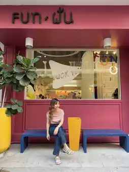 This cute, minimalist-style cafe in the Hua Lamphong area offers a variety of activities to keep you entertained. We painted a cute cake. The staff provided excellent service and were always there to play with us. The shop is located on Maha Phruettharam Road, Maha Phruettharam Subdistrict, Bang Rak District, Bangkok.