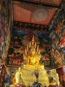 Additionally, the temple features the shrine of Thao Wessuwan, a sacred cave called Tham Bia Kae, and the opportunity to walk under an ancient ordination hall for blessings.