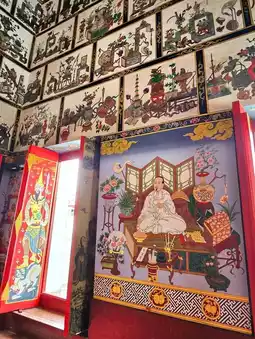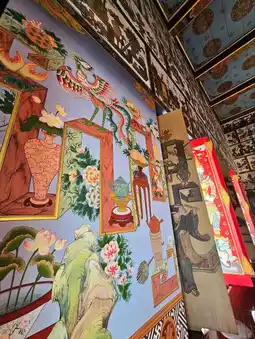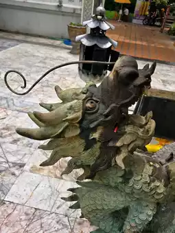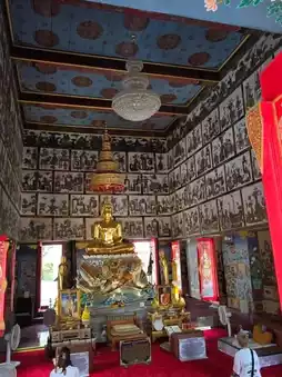 Wat Nak Prok, originally named Wat Pok, was so called because it was located in the middle of a garden covered with trees. It is believed to have been built during the late Ayutthaya period. The temple's ordination hall, known as Ubosot Chao Sua, houses Luang Pho Chao Sua, a bronze Buddha statue from the Sukhothai period in the Maravijaya posture. The statue is renowned for its exquisite facial features and proportions. The walls of the hall are adorned with Chinese-style murals, painted by Chinese artists, depicting auspicious items for Buddhist worship according to ancient Chinese beliefs.