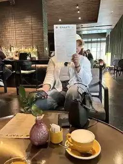 Craft Café in Kimpton Maa-Lai Lang Suan offers a great atmosphere and spacious space. They serve breakfast, drinks, snacks, cakes, and croissants, all of which are incredibly delicious. There's a garden to stroll around and a luxurious pond. There's both an air-conditioned area and an open-air outdoor area. There are several tables and seating options. Inside, there's a counter bar where drinks are served and desserts are displayed. Perfect for pet lovers, dogs, or anyone who loves dogs, you can enjoy both indoor and outdoor seating.