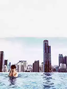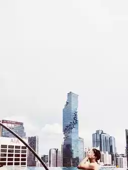 *Visit 4-6PM* when setting sun gilds the skyscrapers in warm tones. Perfect pose: Sit on the pool ledge with legs in water, leaning back slightly to capture both you and the glittering cityscape.