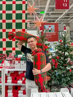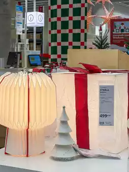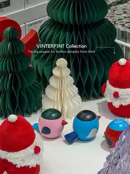 Fir trees, warm lights, and the red and green decorations throughout IKEA's home zones fill the entire space with Christmas spirit, creating a joyful and familiar atmosphere reminiscent of a winter home. 🌿