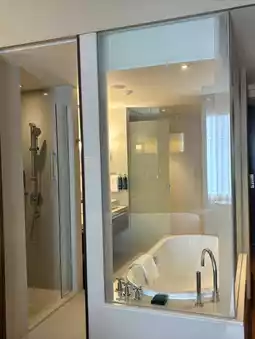 I was upgraded to a spacious, luxurious room with a bathtub! 🏨