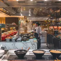 They're showcasing a premium menu featuring fresh ingredients, Chinese, Thai, international, and seafood dishes.