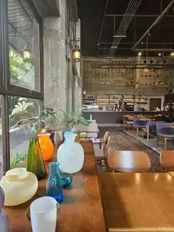 Eastern Glass Cafe ☕ is a unique and incredibly cool cafe in the Bang Khae area. Located within the grounds of the Burapha Glass Factory, a long-established handmade glass factory that's been in business for over 60 years! 🏭 The cafe's atmosphere is a cool industrial loft, with glass production equipment and tools incorporated into the decor, creating a classic yet artistic old factory feel. 🖼️